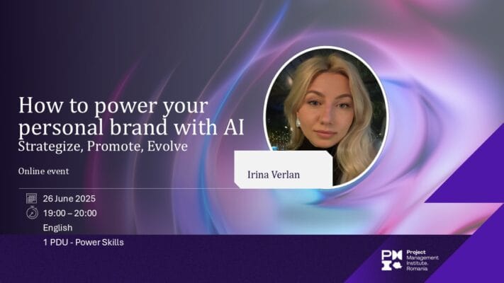 Alăturați-vă nouă la o sesiune practică despre „Cum să vă alimentați brandul personal cu AI: Strategie, promovare, evoluție” cu Irina Verlan, un agent de marketing de creștere strategică cunoscut pentru extinderea strategiilor de introducere pe piață în Europa și pe piețele emergente.